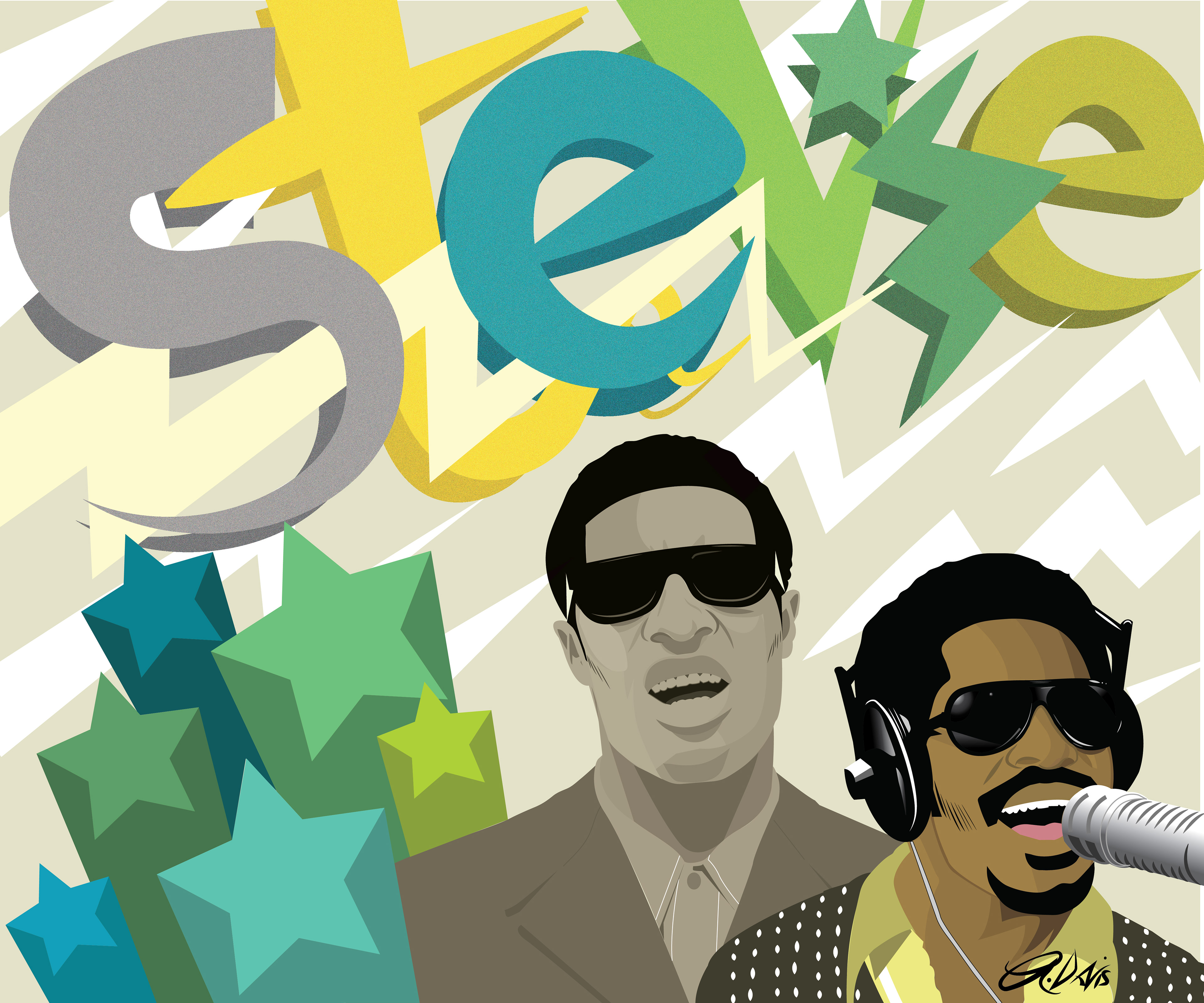 'Stevie': Graphic Illustration paying homage to musician Stevie Wonder.